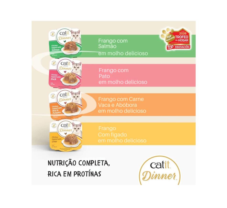 Catit Cuisine Dinner Frango e Salmão está repleto de vitaminas e minerais necessários para o seu patudo se manter feliz e saudável.