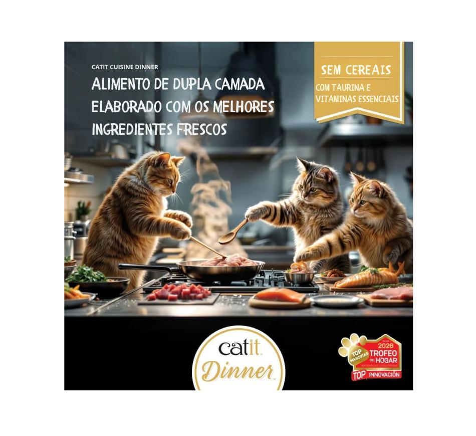 É um alimento húmido de dupla textura de sabores, feito de ingredientes frescos servidos em um molho delicioso, indicado para todos os gatos.