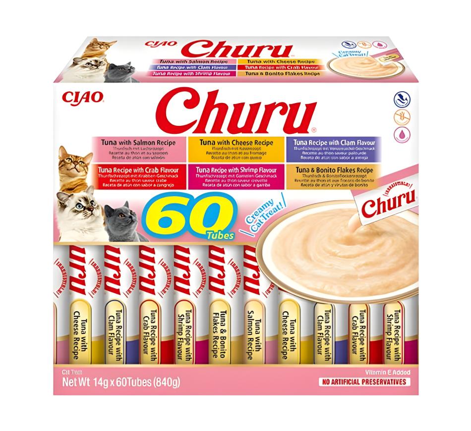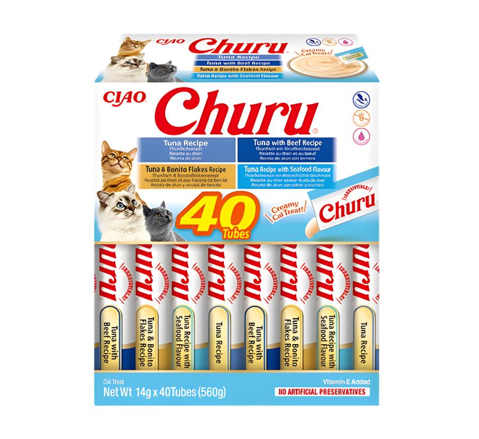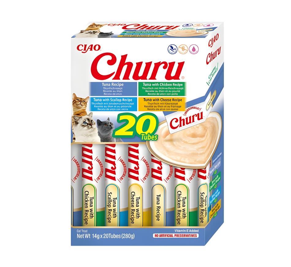 Mime seu amigo felino com o sabor irresistível dos petiscos Churu Gato Box Variedades de Atum!