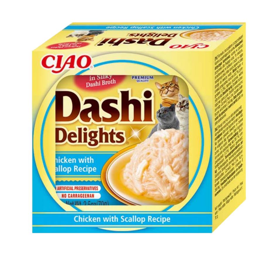 Mime seu amigo felino com o sabor irresistível de Churu Gato Dashi Delights Receita de Frango com Vieira!