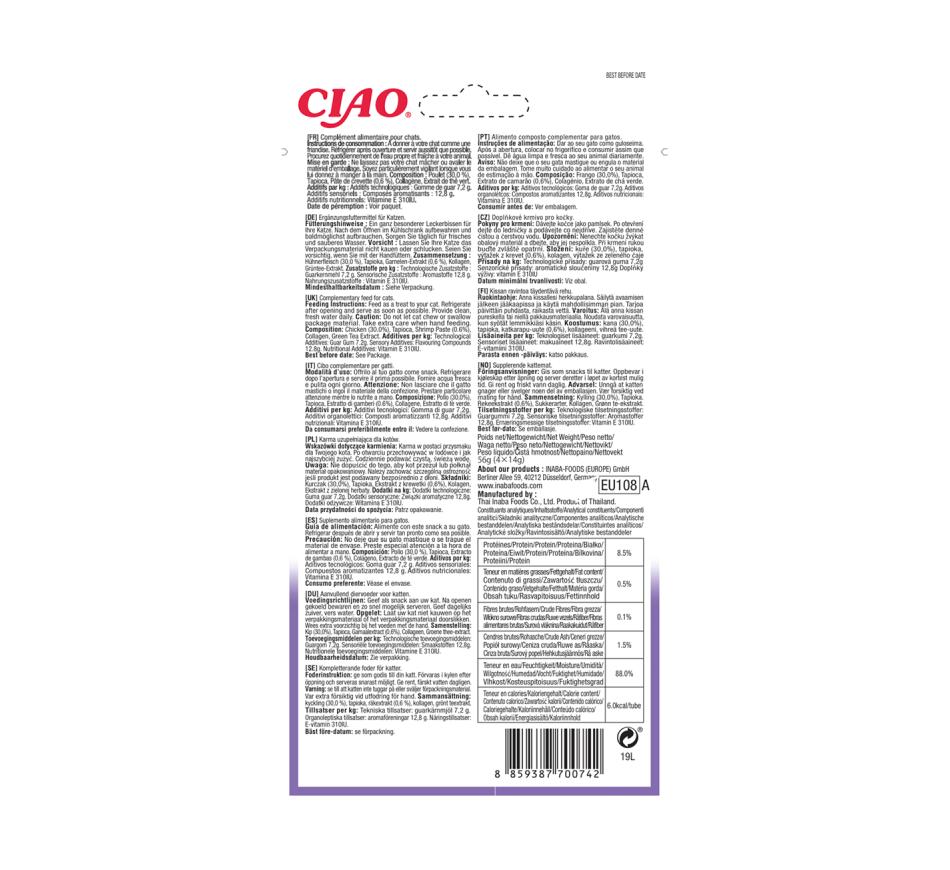 Proporcione ao seu felino uma experiência de sabor única com o Churu Gato Receita de Frango com Gambas! Este snack cremoso e natural é elaborado com frango e gambas 100% naturais, resultando em uma delícia leve e irresistível. Ideal para mimar seu gato, ele é a escolha perfeita para momentos de carinho e conexão.