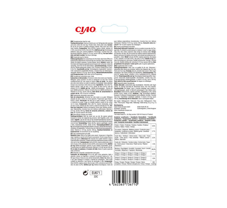 Estes deliciosos petiscos proporcionam ao seu gato uma experiência de lanche saudável e agradável. Oferece os saborosos snacks feitos à base de atum que irão agradar até os paladares mais exigentes. A textura macia e suave torna estes petiscos fáceis de desfrutar para gatos de todas as idades e raças, incluindo gatos idosos ou aqueles com sensibilidades dentárias.