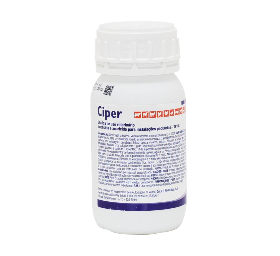 Solução para emulsão contendo 100 mg/mL de cipermetrina, para desinfestação de locais e alojamentos pecuários.