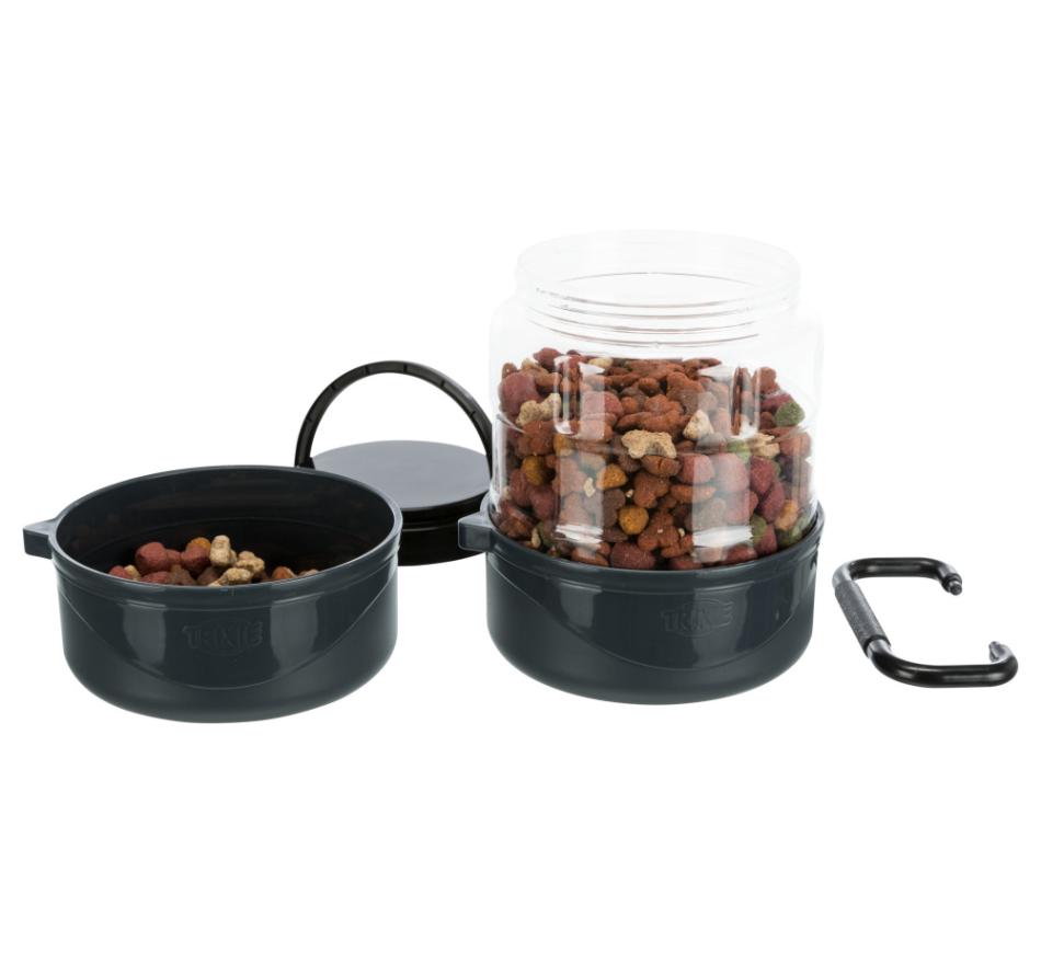 O kit de viagem comedouro / bebedouro é uma excelente opção se vai sair de viagem, e precisa de levar para o seu patudo a comida e a bebida, tudo no mesmo recipiente.