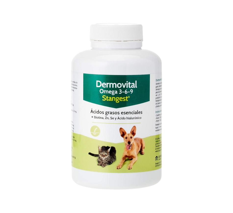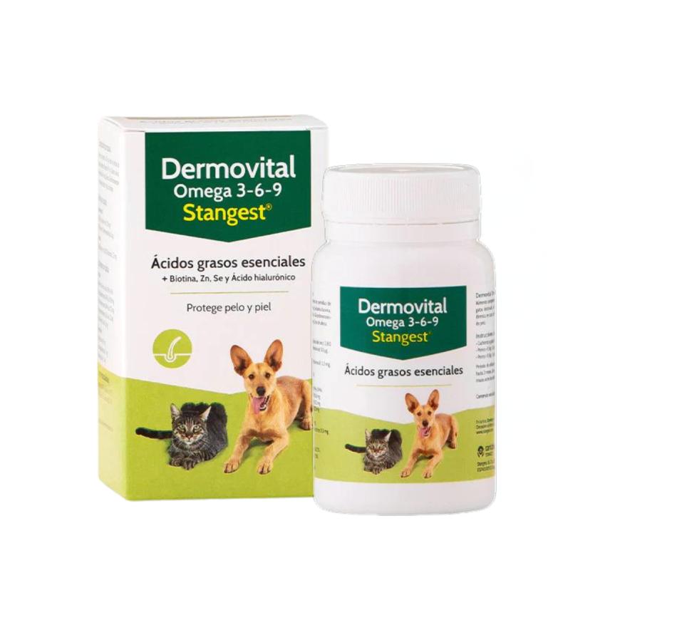 Com esta melhoria, Dermovital Omega 3-6-9 torna-se num dos suplementos nutricionais mais completos do mercado, incluindo ácidos gordos essenciais, oligoelementos essenciais para a pele e vitaminas com poder reparador. Atualmente é um produto veterinário de referência para cães e gatos com pelo e pele seca ou opaca, seborreia, dermatoses ou queda excessiva de pelo.
