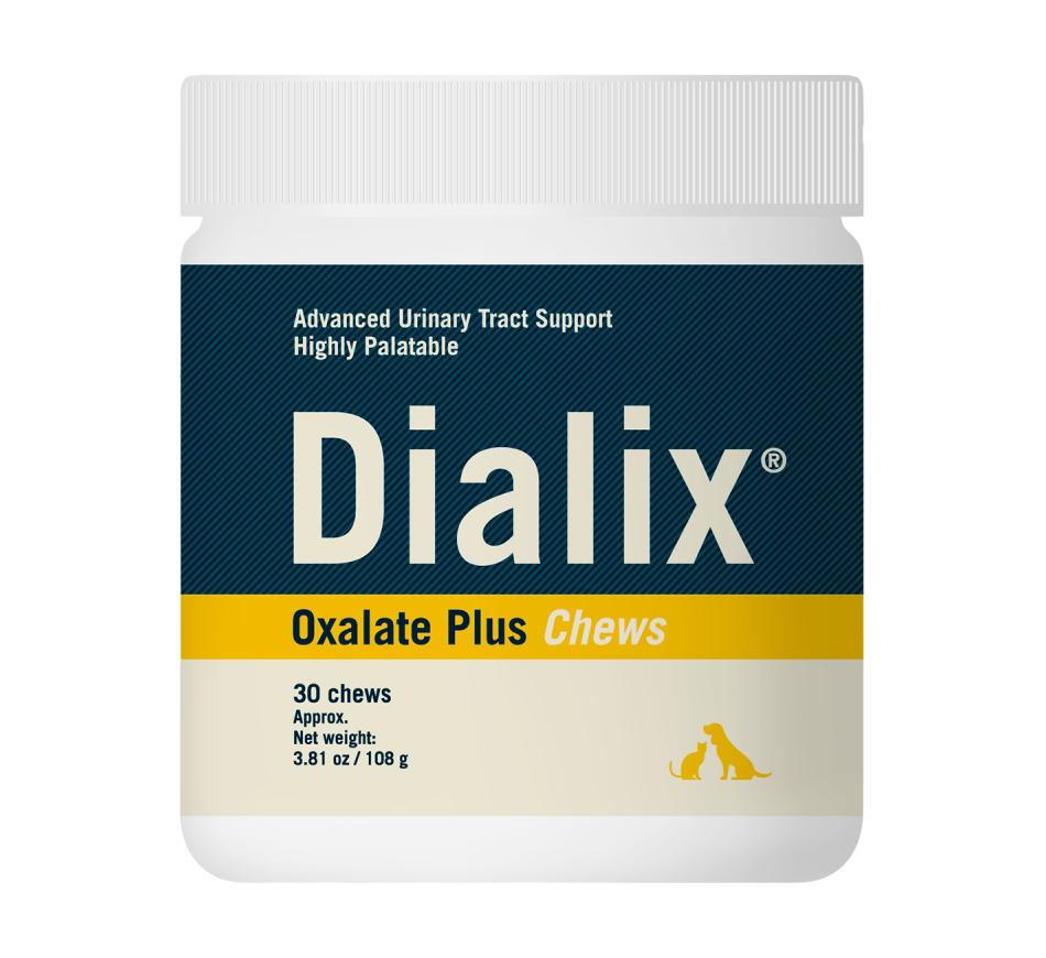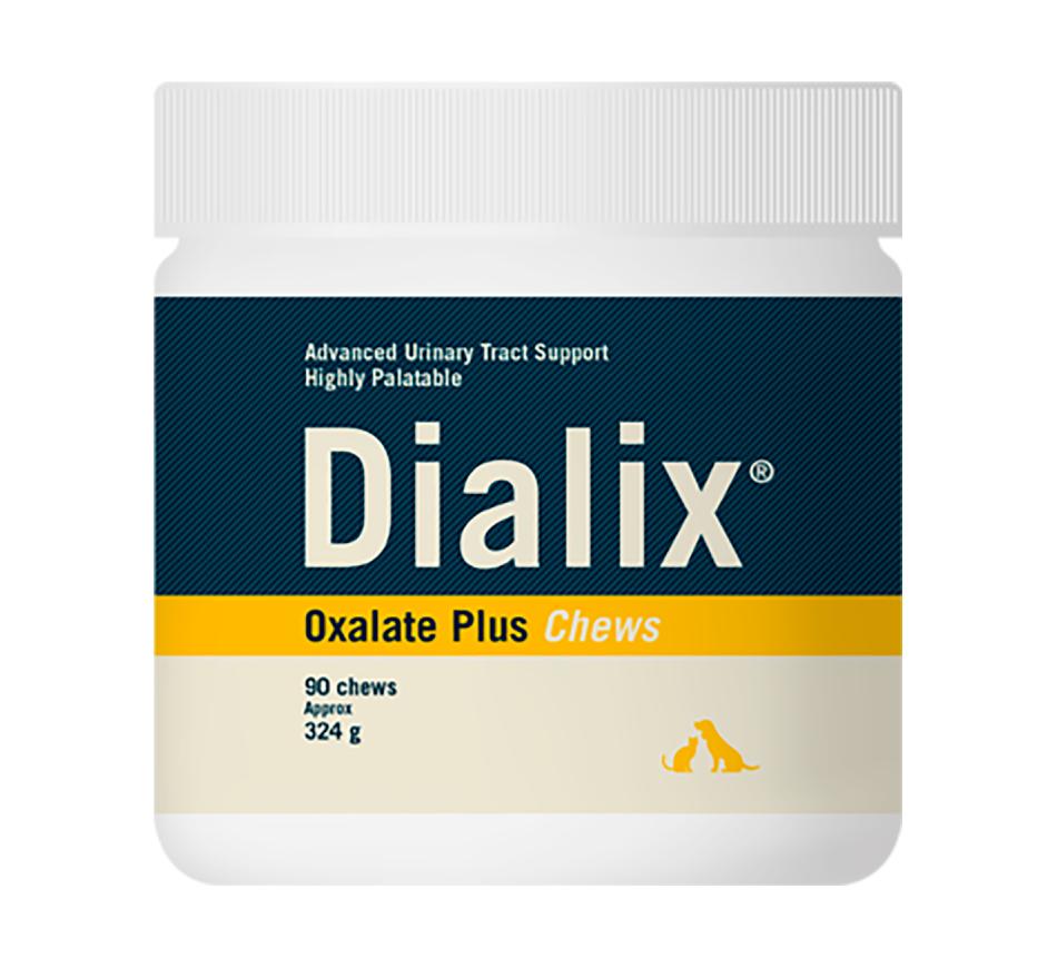 Dialix Oxalate Plus trata e previne o aparecimento de cristais ou pedras na bexiga sendo um complemento ideal para dietas de cuidados urinários.