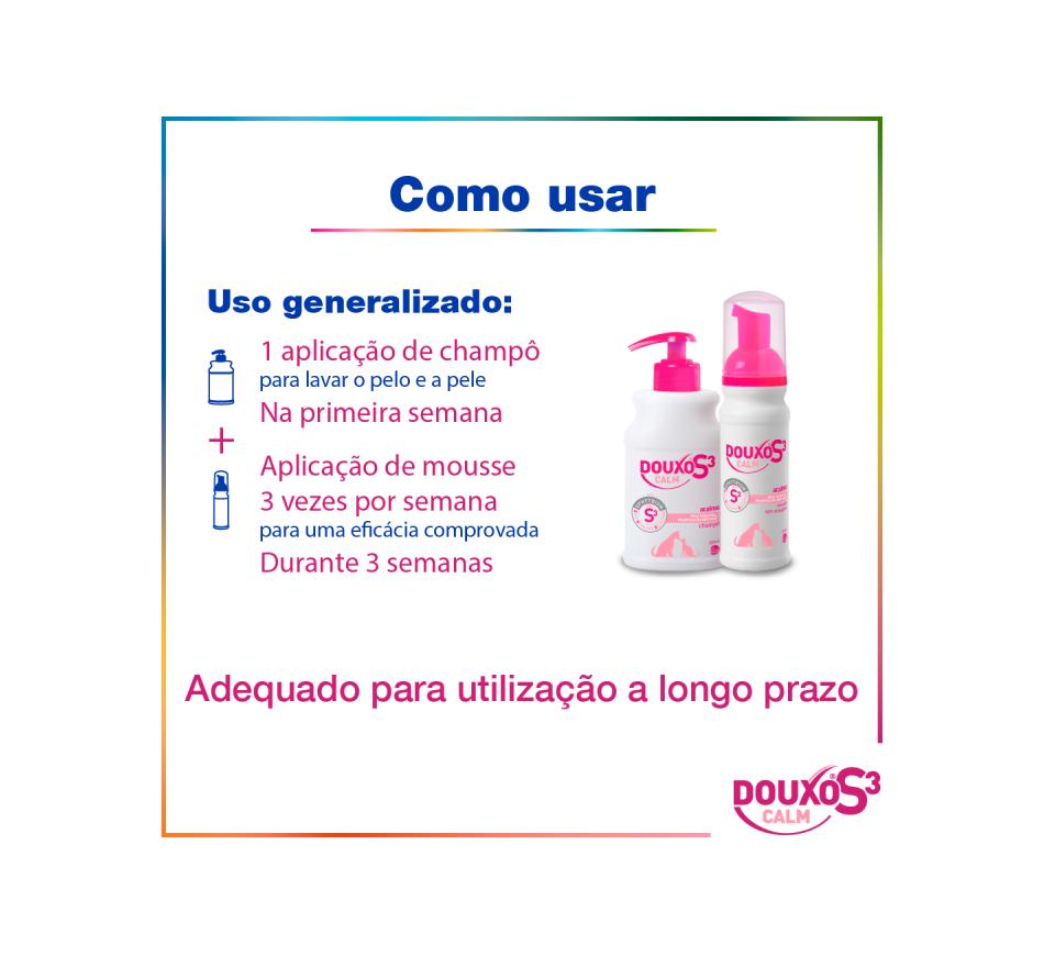 DOUXO S3 Calm champô, coadjuvante de ações de tratamento e profilaxia da dermatite alérgica em cães e gatos.
