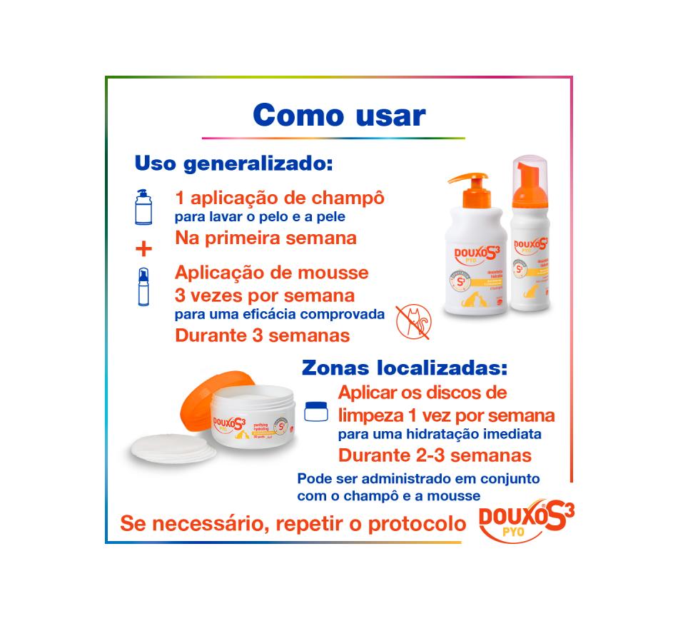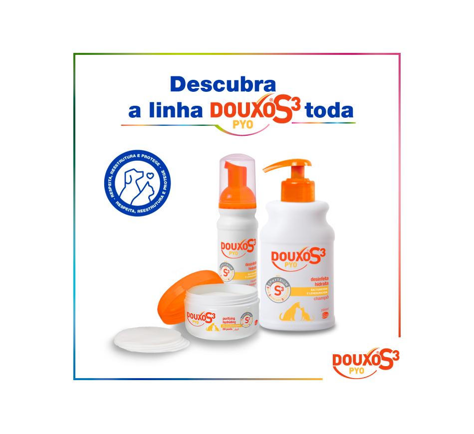 DOUXO S3 PYO CHAMPÔ - Desinfeta, hidrata. Bactericida e leveduricida.