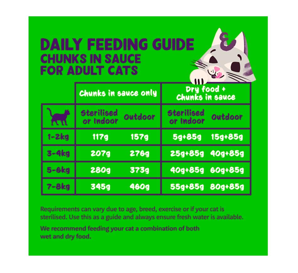 Com pedaços de Cordeiro e frango suculentos e soltos e um molho deliciosoque até os gatos mais exigentes vão adorar. Somos exigentes quando pensamos em nossas receitas, por isso embalamos esta aqui cheia de proteínas para ajudar a manter os músculos saudáveis. E não há cheiro nem sabores artificiais ou adição de açúcar. Todas as nossas receitas também não contêm cereal, são fáceis de digerir e são uma escolha confiável para ajudar a manter o seu gato saudável.
