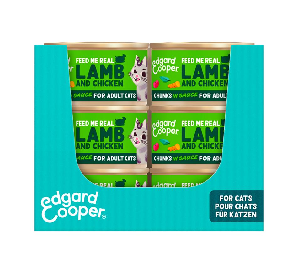 As latinhas de Chuncks de Cordeiro e Frango Edgard & Cooper são uma alimentação húmida completa em pedacinhos de carne num molho irresistível.