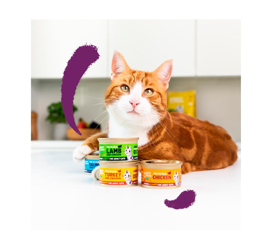 Os gatos são carnívoros naturais, por isso garantimos que as nossas receitas sejam repletas de proteínas de carne fresca e miudezas nutritivas.