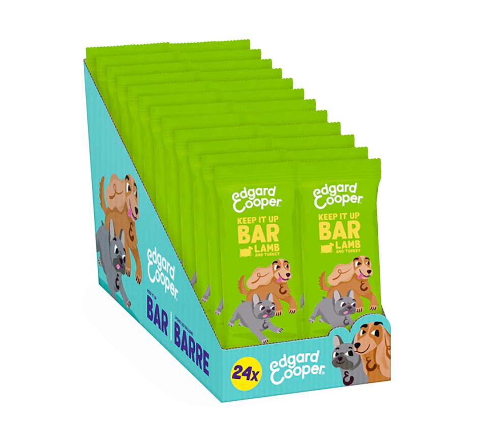 As Barrinhas Edgard & Cooper são ideais como reforço da alimentação diária do seu cão: autêntica carne fresca com frutas e/ou vegetais com um intenso sabor natural.