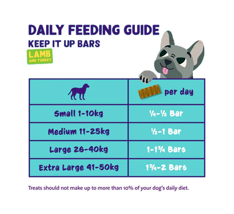 Barras energéticas de cordeiro para cães, preparadas com ingredientes naturais, sem cereais ou açúcares adicionados e textura suave, ideal para oferecer a qualquer altura. Adequados como alimento complementar para cães de todas as raças, idades e tamanhos.