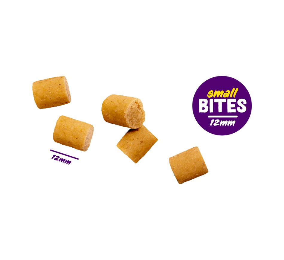 Graças à sua textura ligeiramente crocante e ao seu tamanho reduzido, permitem que o seu animal de estimação mastigue e se divirta enquanto limpa mecanicamente os dentes. São também fáceis de digerir e fornecem energia para continuar a correr e a brincar. O seu tamanho torna-os práticos para transportar no bolso durante os passeios ou sessões de treino.