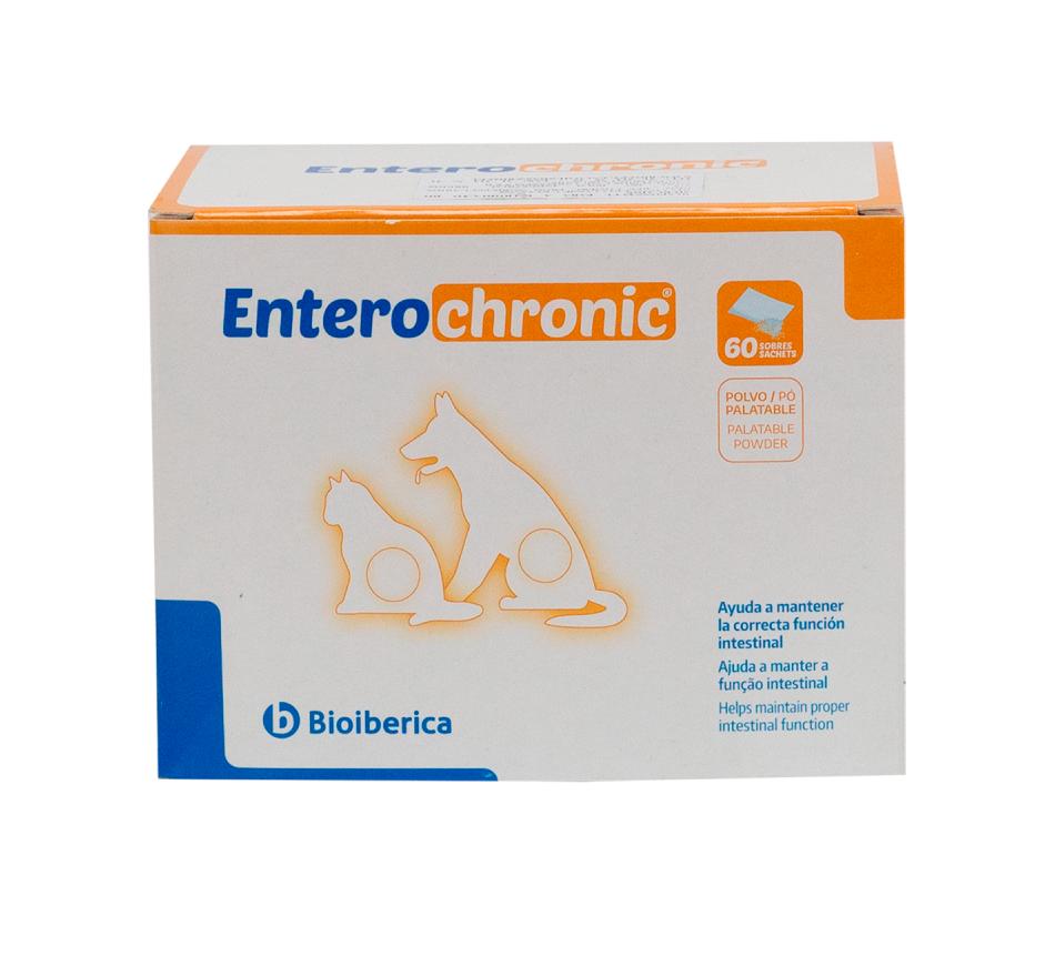Entero-chronic contém substâncias com efeito anti-inflamatório, contém pre-bióticos, que estimulam o crescimento das bactérias benéficas no intestino.