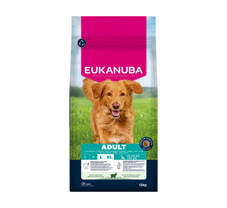 Mime o seu amigo patudo com a irresistível ração seca Eukanuba Cão Adulto de Raça Grande - Cordeiro e Arroz !
