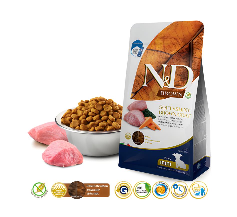 Descubra o melhor para o seu cachorro com o Farmina N&D Brown Cão Puppy Mini - Cordeiro e Spirulina.