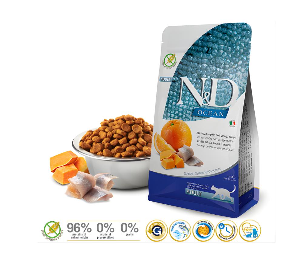 Ofereça ao seu gato a nutrição premium que ele merece com o Farmina N&D Ocean Gato Adulto -Abóbora e Arenque. Este alimento seco completo é especialmente formulado para gatos adultos, oferecendo uma dieta equilibrada e rica em sabor.