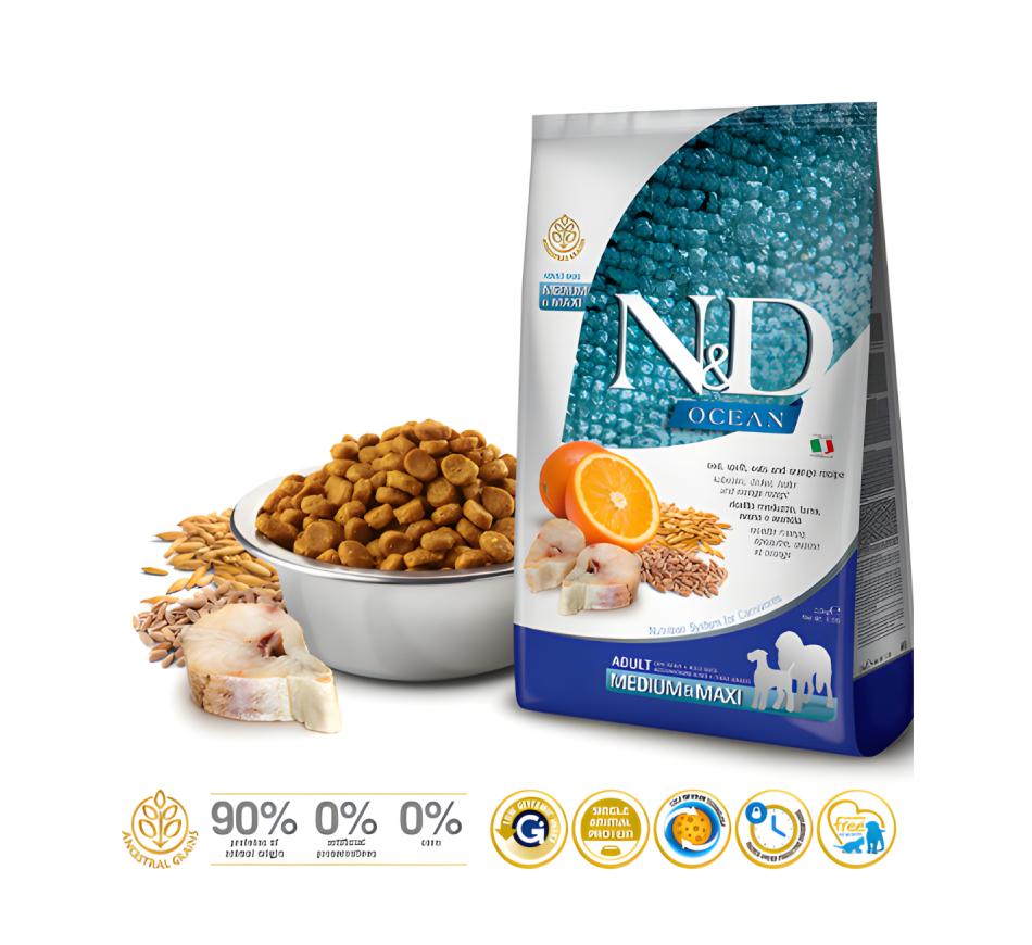 Ofereça ao seu melhor amigo a nutrição que ele merece com o Farmina N&D Ocean Low Grain Cão Adult Medium & Maxi - Bacalhau.