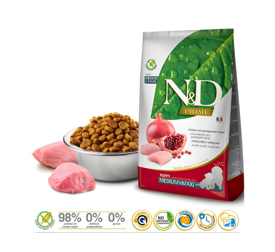 Apresentamos o Farmina N&D Prime Cão Puppy Medium & Maxi - Frango, um alimento seco completo especialmente formulado para atender às necessidades nutricionais de cachorros e cadelas gestantes ou lactantes de raças médias e grandes.