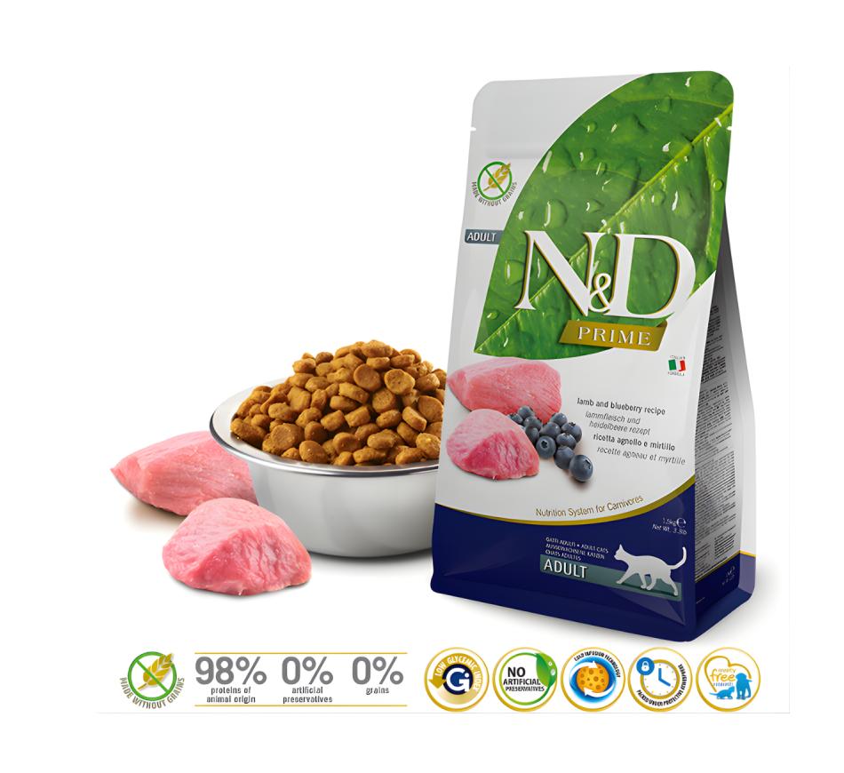 Ofereça ao seu gato a nutrição que ele merece com o Farmina N&D Prime Gato Adulto - Cordeiro.