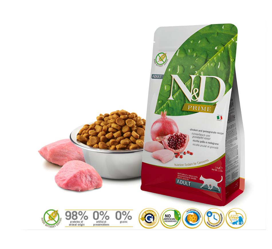 Ofereça ao seu gato a nutrição que ele merece com o Farmina N&D Prime Gato Adulto - Frango.