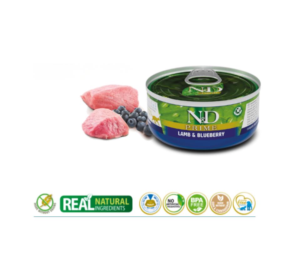 A ração húmida Farmina N&D Prime Wet Gato - Cordeiro é um alimento completo para carnívoros, desenvolvido para todas as fases de desenvolvimento.