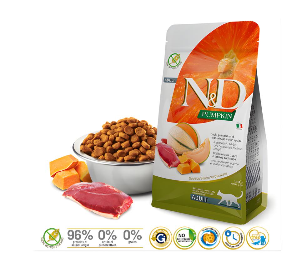 Ofereça ao seu gato a nutrição premium que ele merece com o Farmina N&D Pumpkin Gato Adulto - Pato.