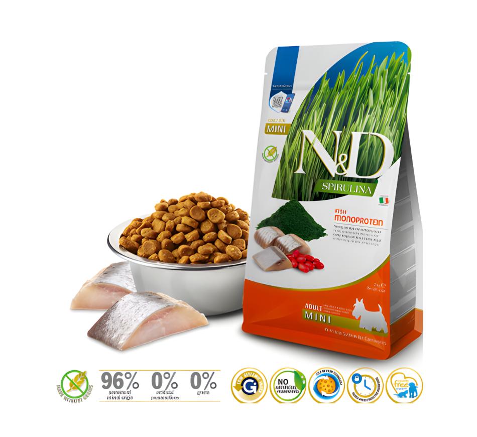 Descubra a excelência nutricional que seu fiel companheiro merece com o Farmina N&D Spirulina Cão Adult Mini - Arenque. Esta ração seca foi especialmente formulada para atender às necessidades dos cães adultos de pequeno porte, oferecendo uma combinação única e poderosa de arenque, spirulina e bagas de goji.