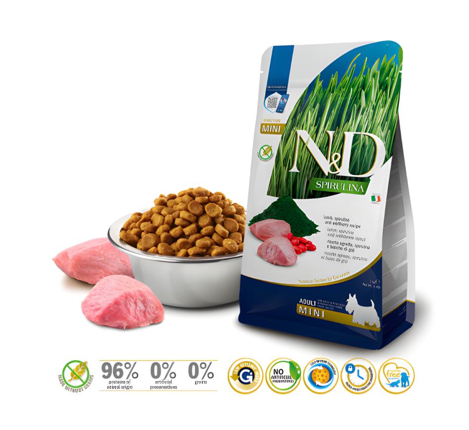 Descubra o alimento seco completo e balanceado que seu cão merece! O Farmina N&D Spirulina Cão Adult Mini - Cordeiro é especialmente formulado para atender às necessidades nutricionais de cães adultos de raça pequena e mini.