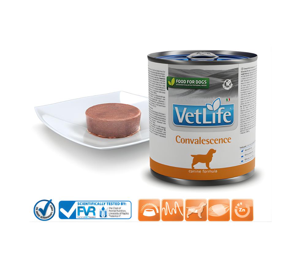 Alimento húmido dietético e completo para cães para a Recuperação nutricional e convalescença.
