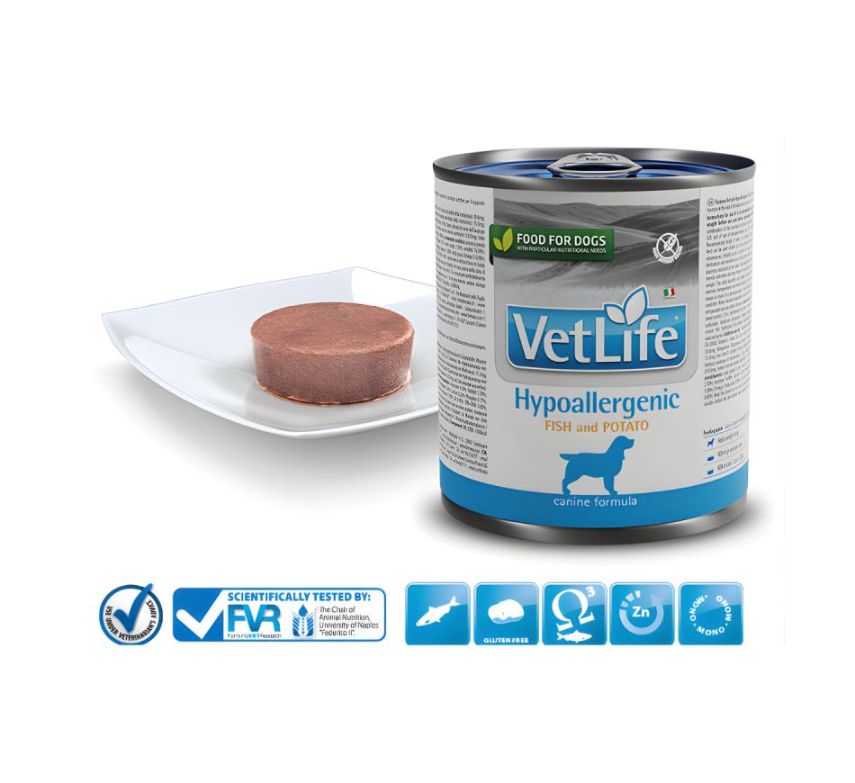 Farmina Vet Life Wet Cão Hypoallergenic Peixe - Alimento Húmido Dietético e Completo para Cães