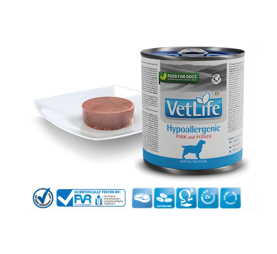 Farmina Vet Life Wet Cão Hypoallergenic Porco e Batata- Alimento Húmido Dietético e Completo para Cães