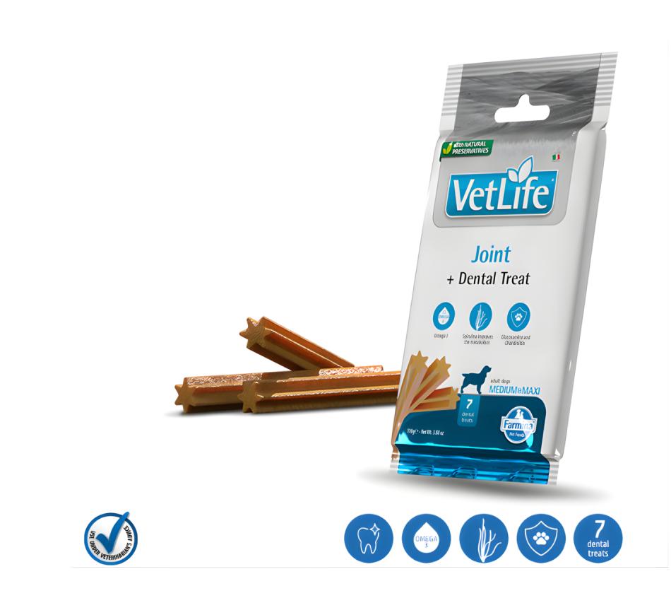 Proporcione ao seu pequeno amigo de quatro patas um tratamento saudável e saboroso com o Farmina Vet Life Joint Treat Cão Medium & Maxi!