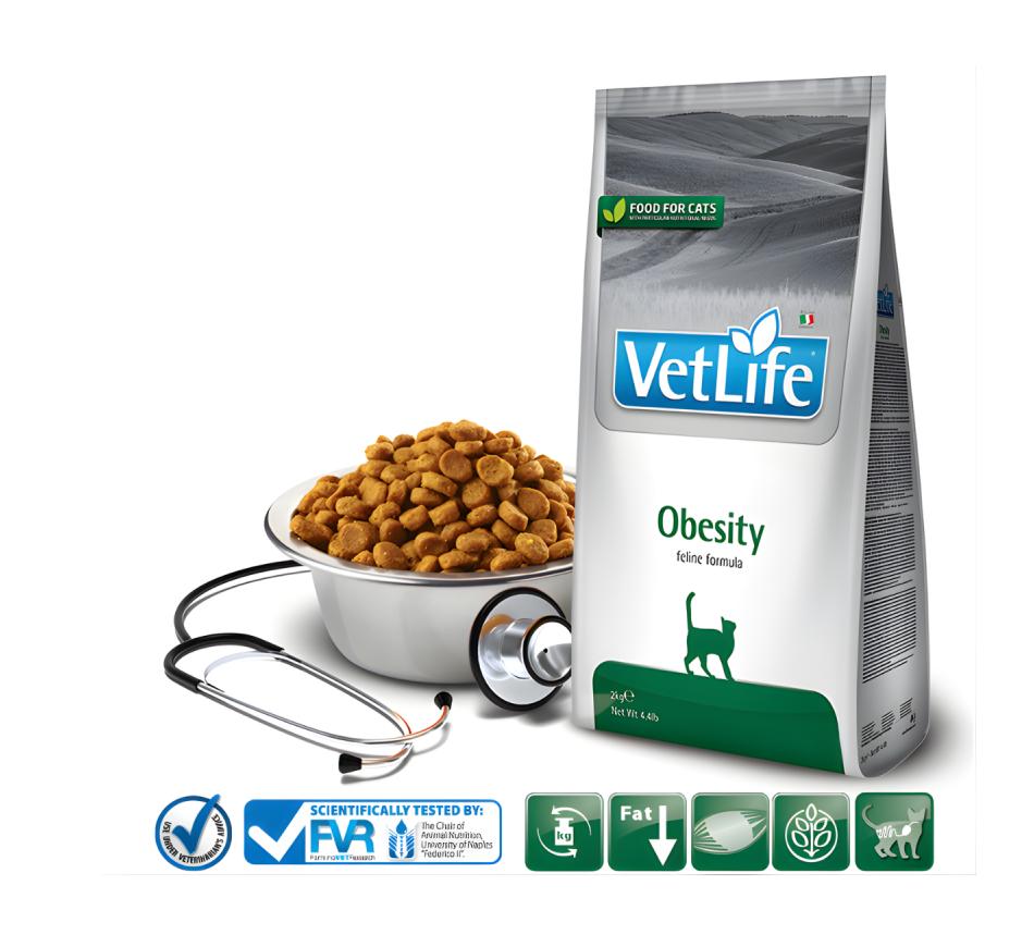 Farmina Vet Life Obesity Gato - Frango é um alimento seco dietético especialmente formulado para gatos adultos que precisam reduzir o excesso de peso corporal. Com ingredientes de alta qualidade e uma composição balanceada, graças à densidade energética reduzida e o elevado teor de fibras este alimento é a solução ideal para promover um emagrecimento saudável e eficaz.