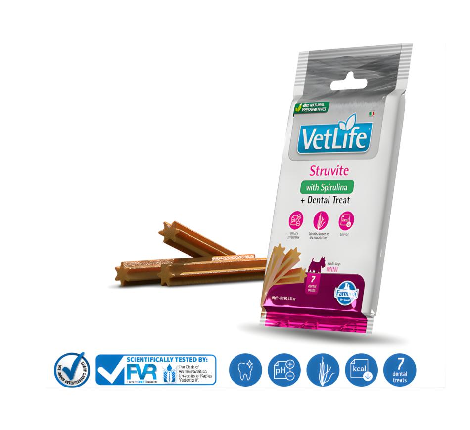 Snack dentário para cães de porte pequeno ou mini, com mais de 4 meses. Ideal para ajudar a dissolver cálculos de estruvite e reduzir a ocorrência de recorrências de cálculos de estruvite em cães.