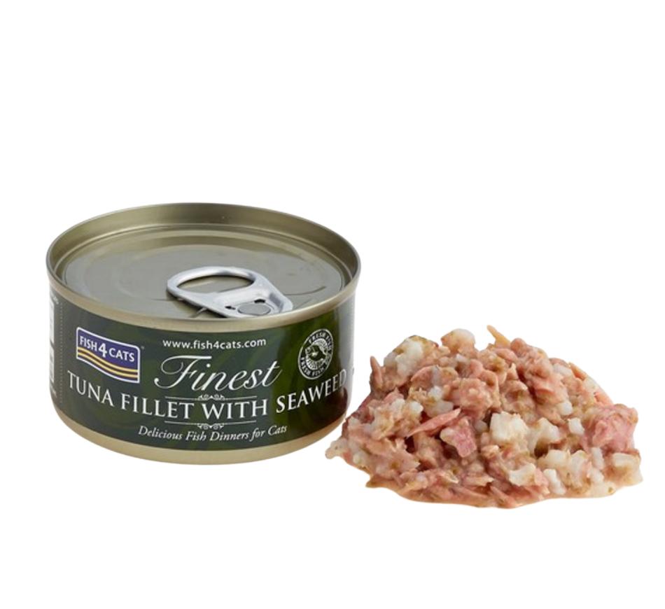 Os gatos adoram o sabor do peixe! E o seu amigo felino vai adorá-lo ainda mais quando o alimentar com Fish4Cats Finest Filete de Atum com Algas Marinhas . Esta é uma refeição saudável e deliciosa, rica em Ómega 3 e com uma proteína de fácil digestão. Com o seu elevado teor de peixe, a gama de alimentos húmidos Fish4Cats proporciona uma dieta que reflete a dieta natural dos gatos, tornando-a a forma mais saudável de alimentar os seus gatos
