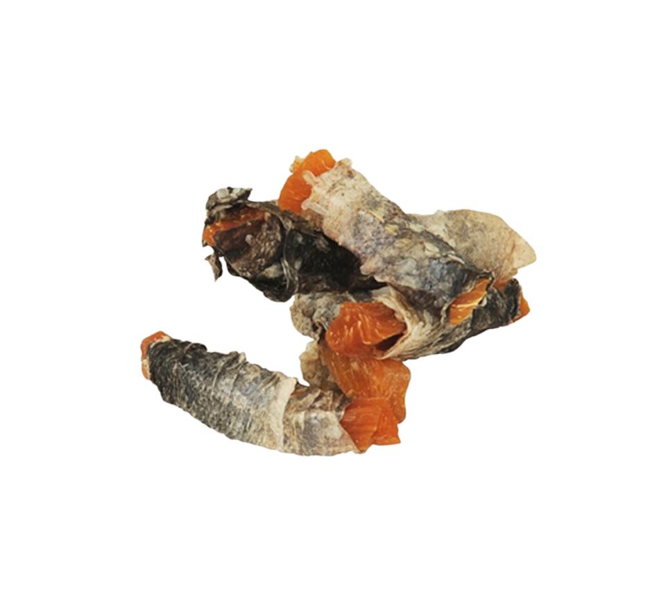 Fish4Dogs Love Sweat Patato Fish Wraps - é um snack de batata doce enrolada em casca de peixe branco, com alto valor de recompensa para o seu patudo e de alto valor nutritivo sem calorias.