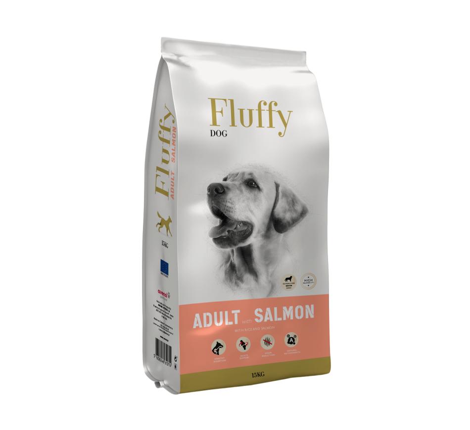 Fluffy Cão Adulto Salmão é um alimento seco, completo e equilibrado, para cães adultos e séniores, rico em aves e arroz e com salmão.