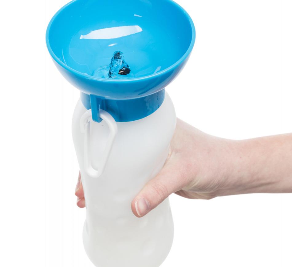 Em dias que quando saímos com o nosso patudo, de maior calor ou em passeios mais longos, temos connosco a prática garrafa com bebedouro, o que nos permite satisfazer a necessidades que eles têm de beber água se o passeio for exigente ou se for um dia de calor.