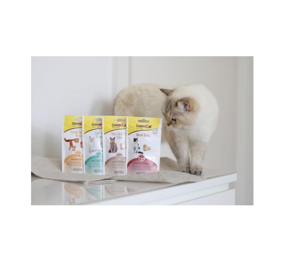 Mantenha seu gato sorrindo com GimCat Denta Tabs – a maneira deliciosa de promover a saúde bucal e o hálito fresco todos os dias.