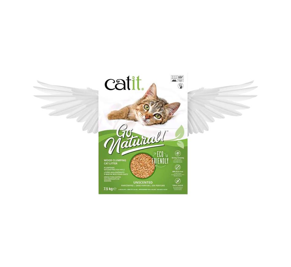 Catit Go Natural™ Clumping Wood Litter é completamente livre de produtos químicos, aditivos, pesticidas, plásticos e aromas sintéticos. O aroma de baunilha e lavanda é completamente natural. Assim, a caixa de areia ou WC do seu gato será um espaço aconchegante e natural para ele.
