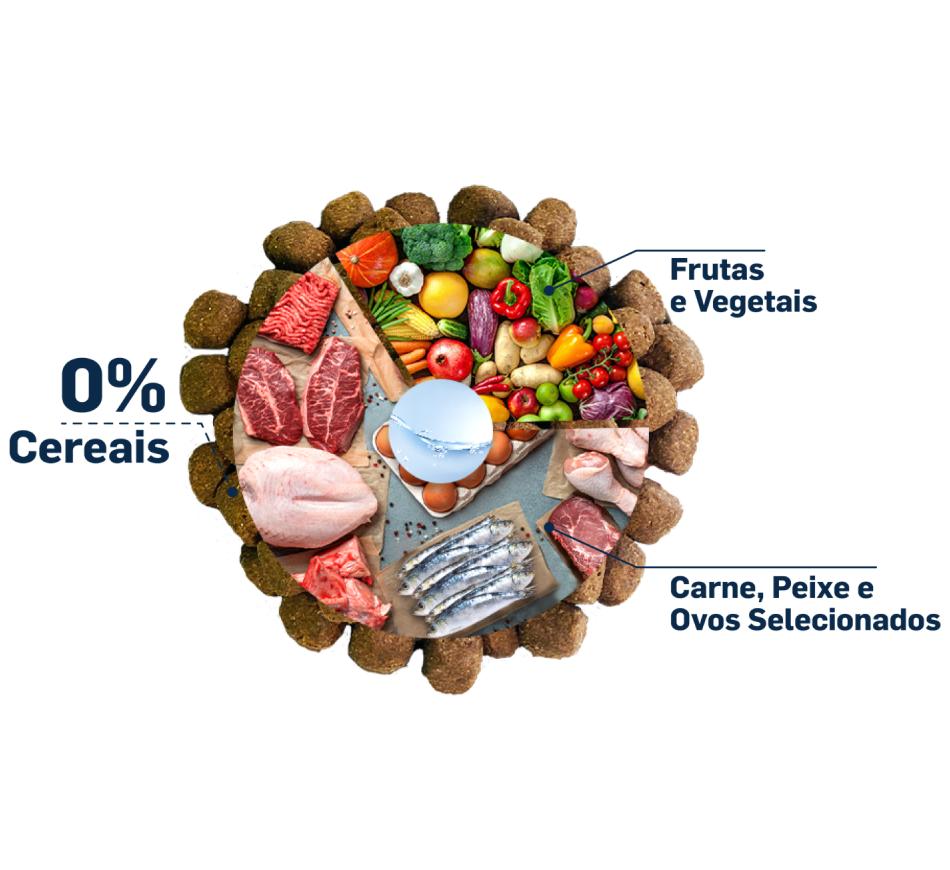 Ração super premium, em cronquete, sem cereais, com carne fresca de aves e está indicada para cães adultos de todas as raças.