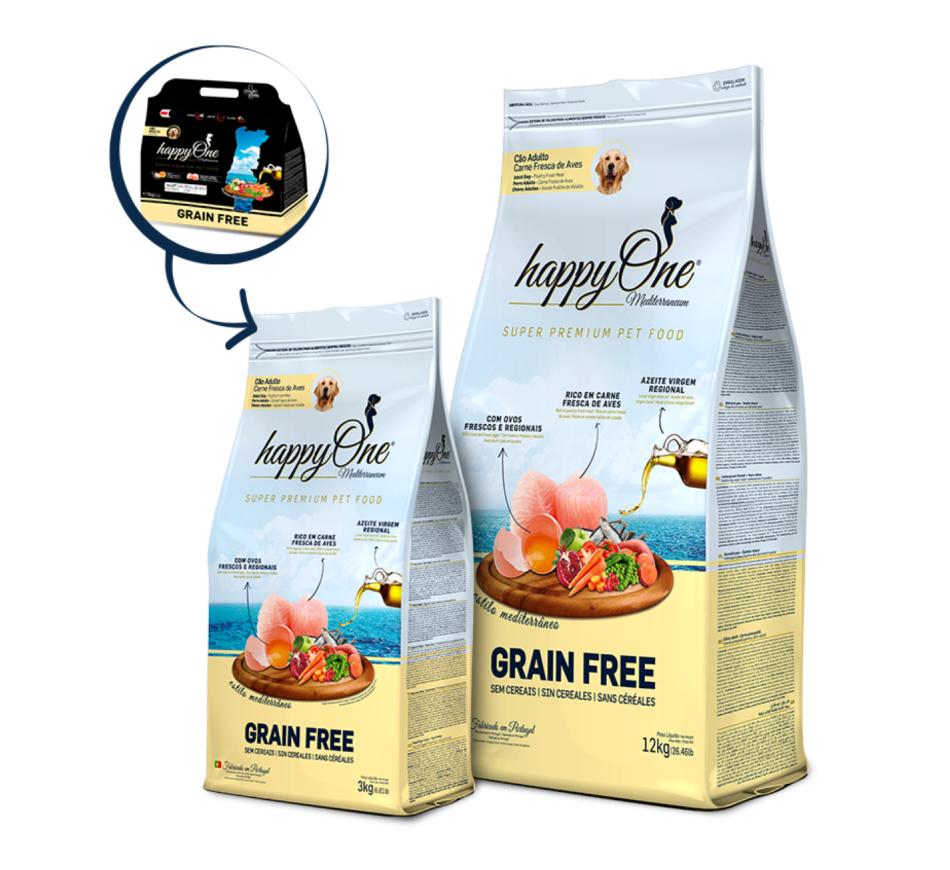 Neste sentido criámos happyOne Mediterraneum, para quem prefere uma alimentação sem cereais ou para cães e gatos com organismos mais sensíveis. Compensamos a ausência de cereais com outras fontes de hidratos de carbono mais adequados ao aparelho digestivo de cães e gatos.