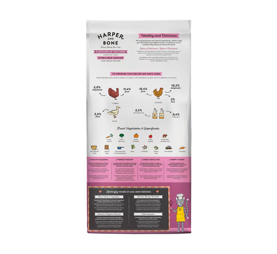 Descubra o sabor irresistível da Harper and Bone Gato Senior Sterilised Flavours of the Farm!
