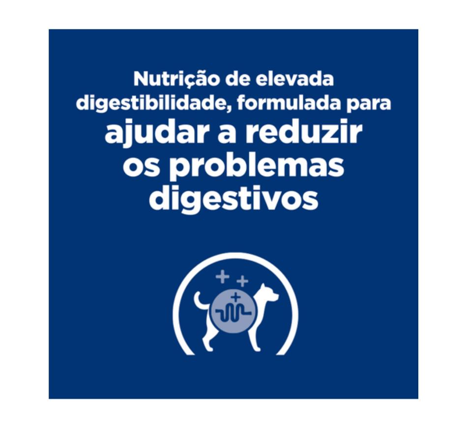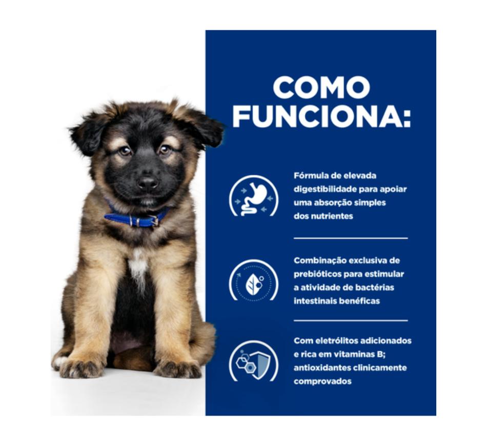 Hill's Prescription Diet i/d Puppy alimento seco para cachorro com frango é um alimento nutritivo com um sabor delicioso, formulado para ajudar a reduzir os problemas digestivos. Este alimento de fácil digestão, com eletrólitos adicionados e elevado teor de vitaminas B, assegura uma fácil absorção dos nutrientes e repõe os nutrientes perdidos. Produzido com Hill's ActivBiome+ Digestion, uma combinação exclusiva de fibras prebióticas, que demonstrou clinicamente nutrir o microbioma intestinal para promover a qualidade das fezes e a saúde digestiva. Fortalecido com ómegas-3 e -6, e com antioxidantes clinicamente comprovados para apoiar um sistema imunitário saudável. Hill's Prescription Diet i/d Puppy alimento seco para cachorro é especialmente formulado para ajudar a reduzir os problemas digestivos e corresponder às necessidades nutricionais específicas dos cachorros.