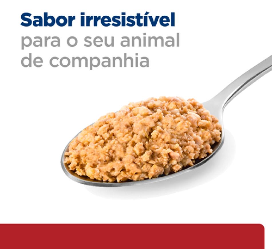 Alimento dietético completo, húmido em patê de frango, indicado para cachorros para ajudar a reduzir os problemas digestivos. Alimento nutritivo de fácil digestão.