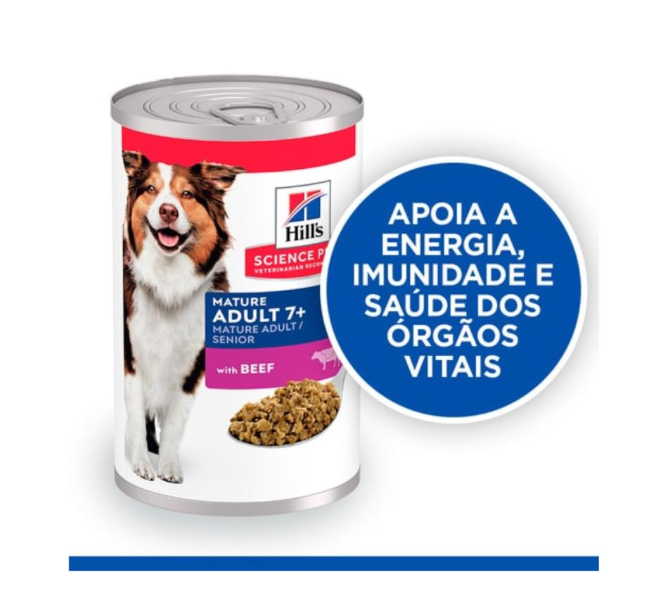 Hill's Science Plan alimento húmido para cão adulto maturo com vaca é um alimento húmido completo e equilibrado para cães. Este patê contém um teor de nutrientes e energia adaptado às necessidades e ao nível de atividade dos cães mais velhos (7+ anos), incluindo: