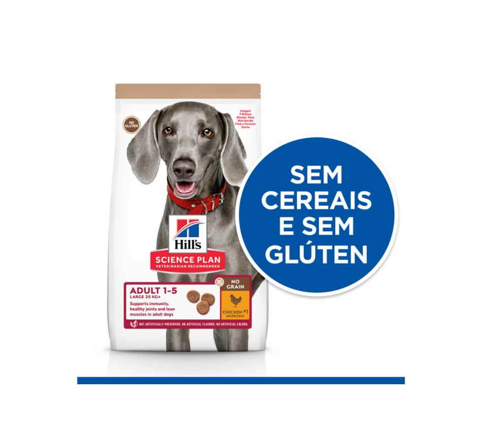 Hill's Science Plan Cão Adulto No Grain Raça Grande frango é igualmente importante para satisfazer as necessidades energéticas dos cães durante o auge das suas vidas. Apoia a imunidade, uma digestão saudável e a manutenção de massa muscular magra em cães adultos.