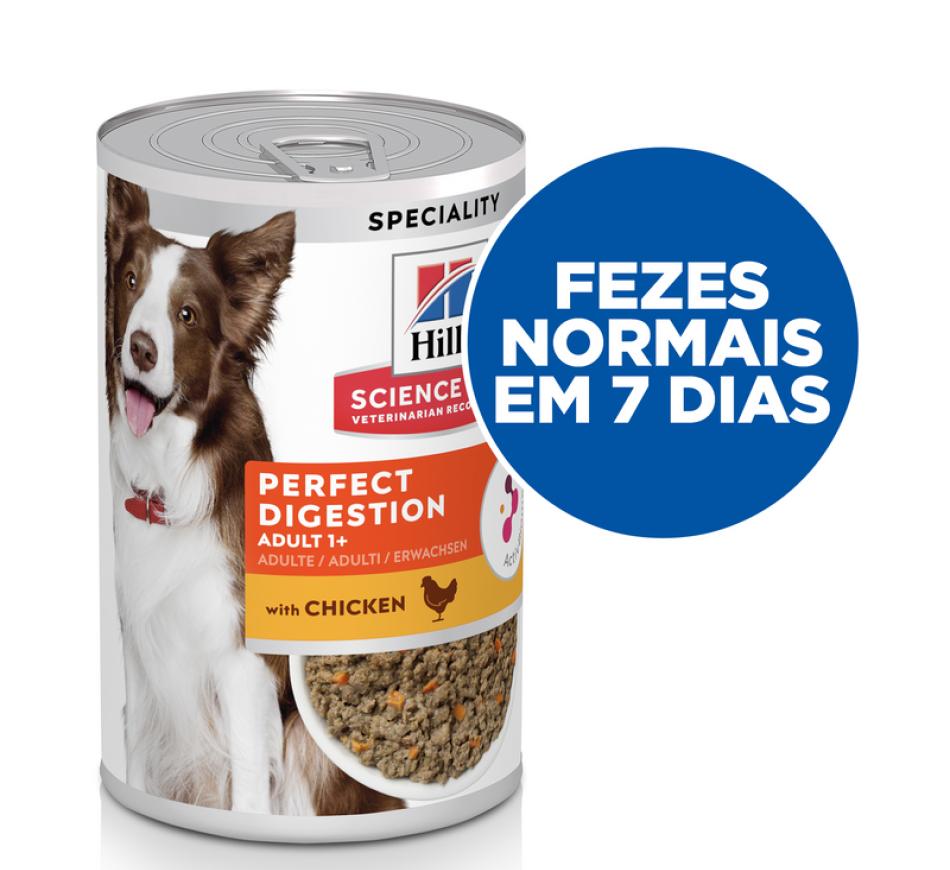 Hill's Science Plan Perfect Digestion alimento para cão adulto com frango e vegetais adicionados é um alimento completo para cães adultos com 1 ou mais anos de idade.
